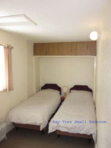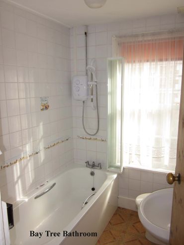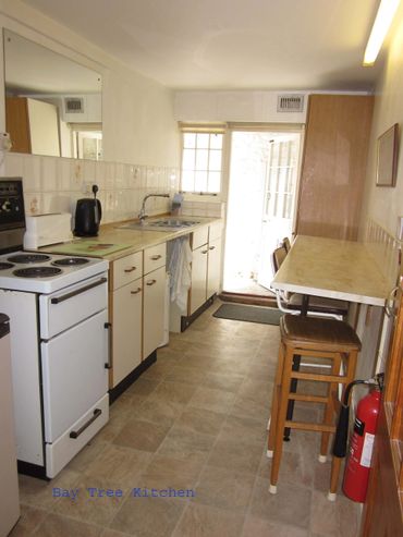 Bay Tree Cottage consists of an entrance hall, lounge/dining room and kitchen downstairs and two bedrooms and a bathroom upstairs. The fitted kitchen has a breakfast bar. The main bedroom has two single beds linked together to make a king size bed (5 feet wide), but they can be separated if required. The second bedroom is entered through the main bedroom and has two (2 feet 6 inches) single beds. A cot is available if required. The bathroom has a toilet, wash basin and bath with electric shower. There is a small front garden.